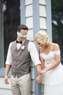 Hello Vintage Romance! The feel of this dress is so feminine and soft I just love everything about it! Beneath a silk pink champagne gathered waist sash, lies this sweet bodice which consists of a beautifully tea-stained lace that slowly trickles down the waist and into the soft three tiered organza gathered skirt. A wonderfully small and yet surprisingly important detail to this gown are the romantic organza droop sleeves... this really adds to the softness of this gown. But wait till she turns around! The back has a stunning vintage eyelet corset going down the back with a beautiful silk pink champagne ribbon to tie it all together like a wonderfully wrapped gift waiting for the groom! Waiting inside are two sweetly embroidered messages for the bride and groom to enjoy. Hopefully you too, will feel the love in these photos as I do and enjoy this one of a kind custom creation fit for a prairie princess.